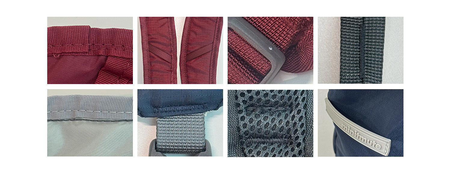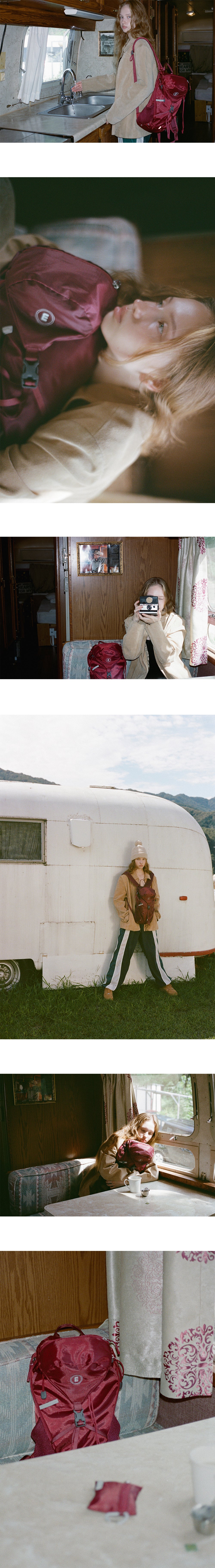 ミニットミュートのsporty bask backpackです。「日差しを浴びる」という意味が込められている「bask」ラインは、日常の散歩から旅行まで、様々なアウトドアのシーンを楽しむために存在します。ほのかなドビーパターンの薄くて軽い生地を使用。優れた耐久性と生活防水機能が特徴で、アウトドアの製品に主に使用されている生地です。様々な収納スペースとキーリングフックがあり、実用性が高いです。横にファスナーがあり、バッグを肩にかけたまま、荷物を取り出すことができます。ミニットミュートのロゴ刻印、スポーティラインのシグネチャーのグレータグからブランドのアイデンティティを感じられます。