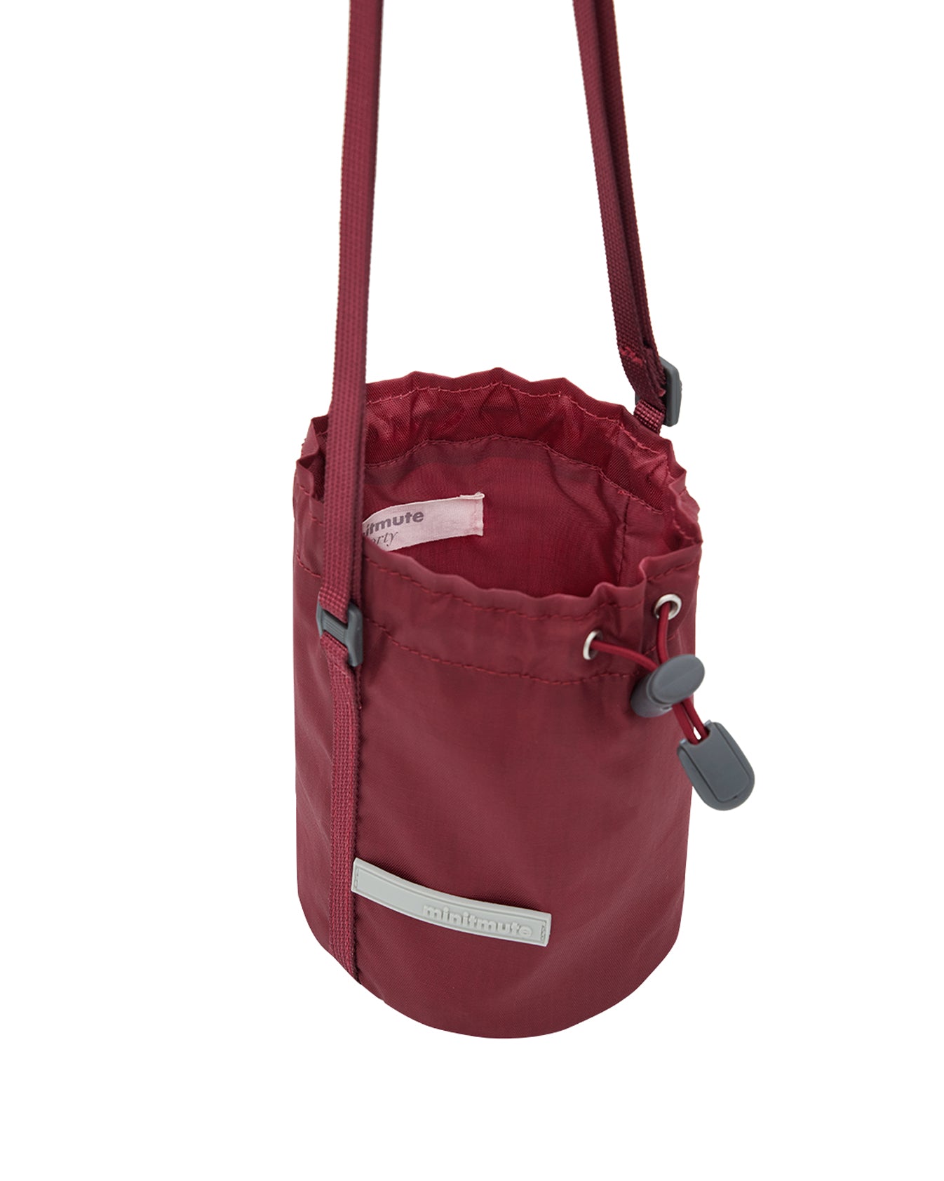 ミニットミュートのsporty bask circle string bagです。リップストップ構造の組織感が特徴の薄くて軽い生地を使用。優れた耐久性と生活防水機能が特徴で、アウトドアの製品に主に使用されている生地です。ボトルバッグとしては500ml以下のボトルまで収納ができます。また、ミニバッグとしても活用できます。