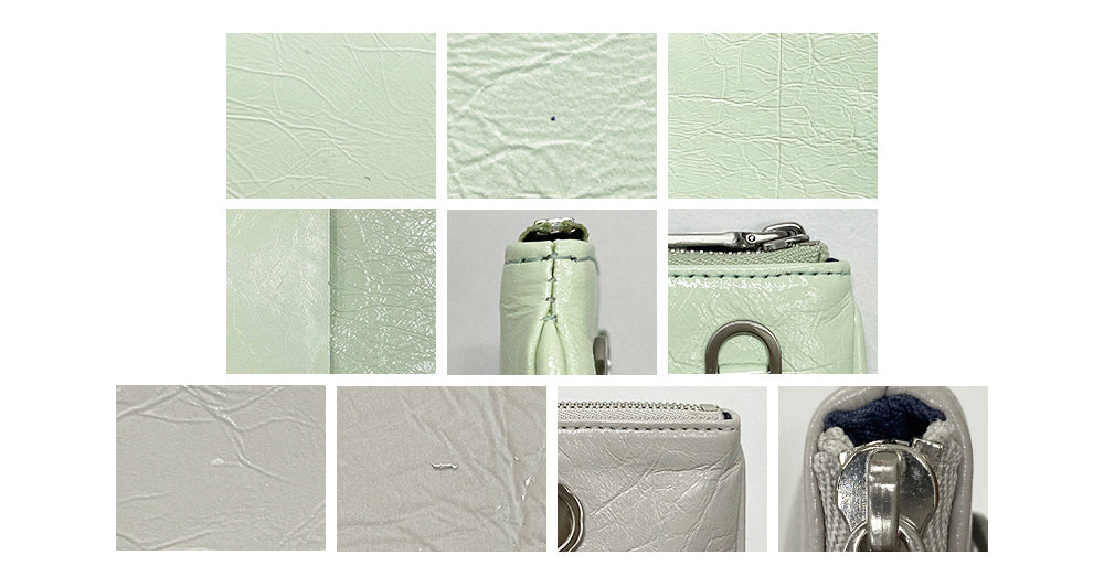 ミニットミュートMood vintageラインのBrett microです。イタリアのクラックレザー仕様で自然な光度と不規則的なしわの模様で高級な質感を表現しました。また、 社会的、環境的に持続可能な環境に優しいメタルフリー方式で製作されました。チェーンストラップは背面のDリングにかけることができ、身長、体形に合わせて長さ調整が可能です。現金、カードはもちろんリップも収納できます。また、内部ファスナーは海外旅行などの際、小銭入れとして活用できます。