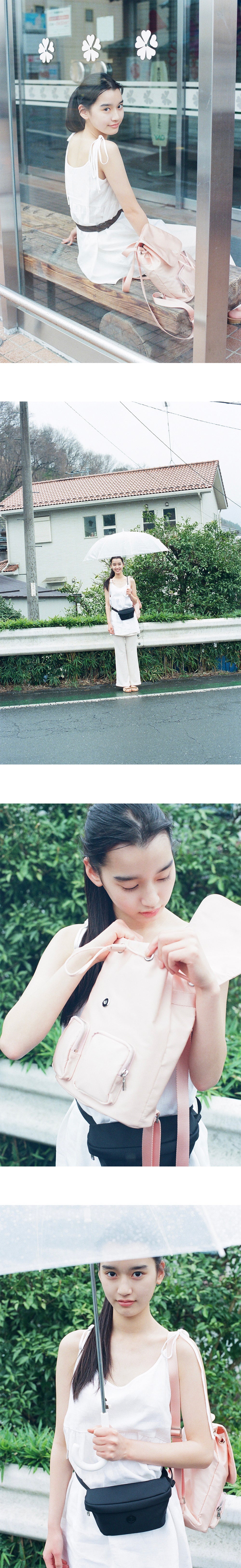 ミニットミュートの Clo backpack です。エコリサイクル生地仕様。世界初のオランダコントロールユニオン社のS認証を取得。優れたカラーリングの均一性とその価値が認められました。生活防水も可能。フロントポケットはAIRPODS、クレジットカード、リップ等の小物入れができ楽々に使用できます。