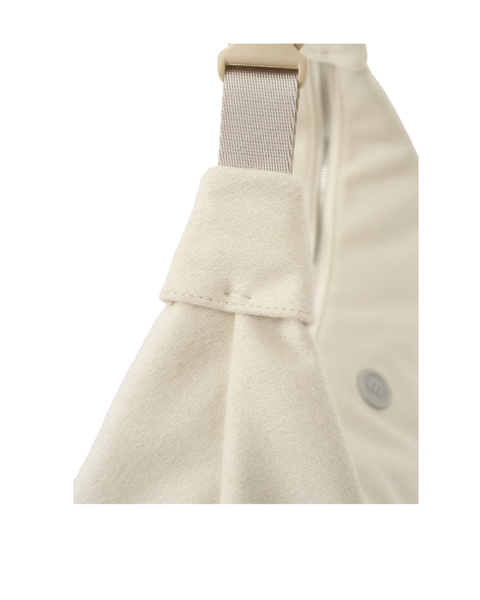 ミニットミュートのclo waist Lです。ウールの丈夫な耐久性とカシミヤの柔らかさか特徴のプレミアム生地を使用。ほのかなツヤと保温性が特徴です。既存のclo waistより3倍程の荷物が収納ができる収納力抜群のバッグです。