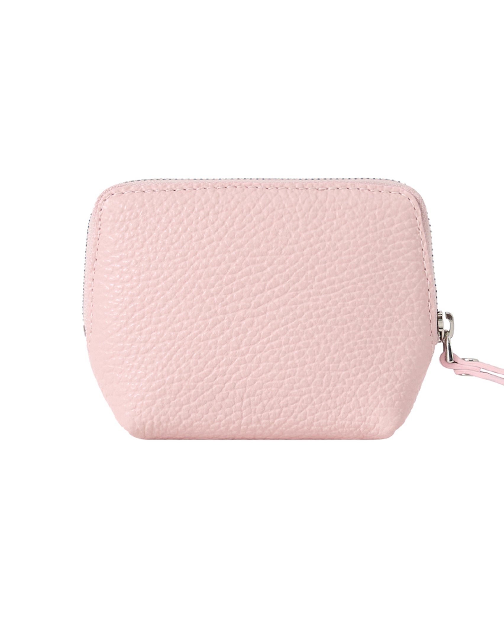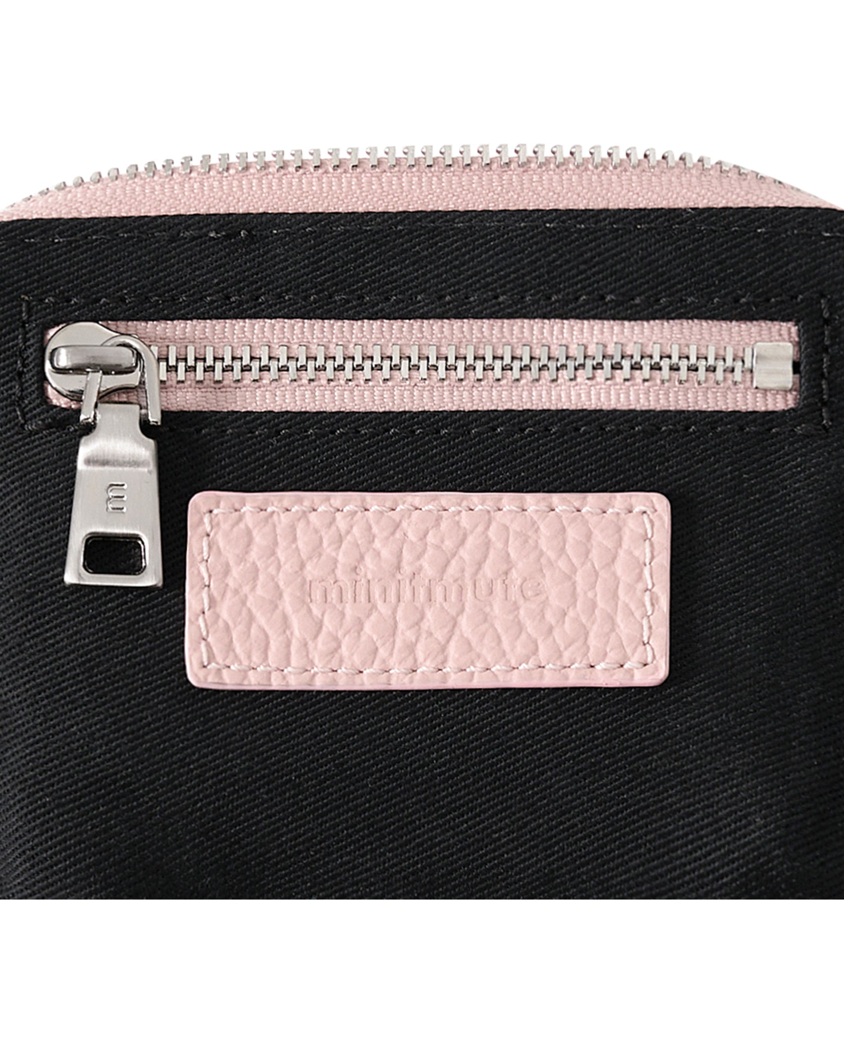 ミニットミュートのm pouch walletです。イタリアのオプルタイプの革は、自然なエンボが特徴で、キズや水分に強い方です。内部にはカードやコインの収納が可能なファスナー付ポケットがあり、リップやair podsなどの小物も一緒に収納できます。ミニットミュートのシグネチャーmロゴがワンポイントになります。