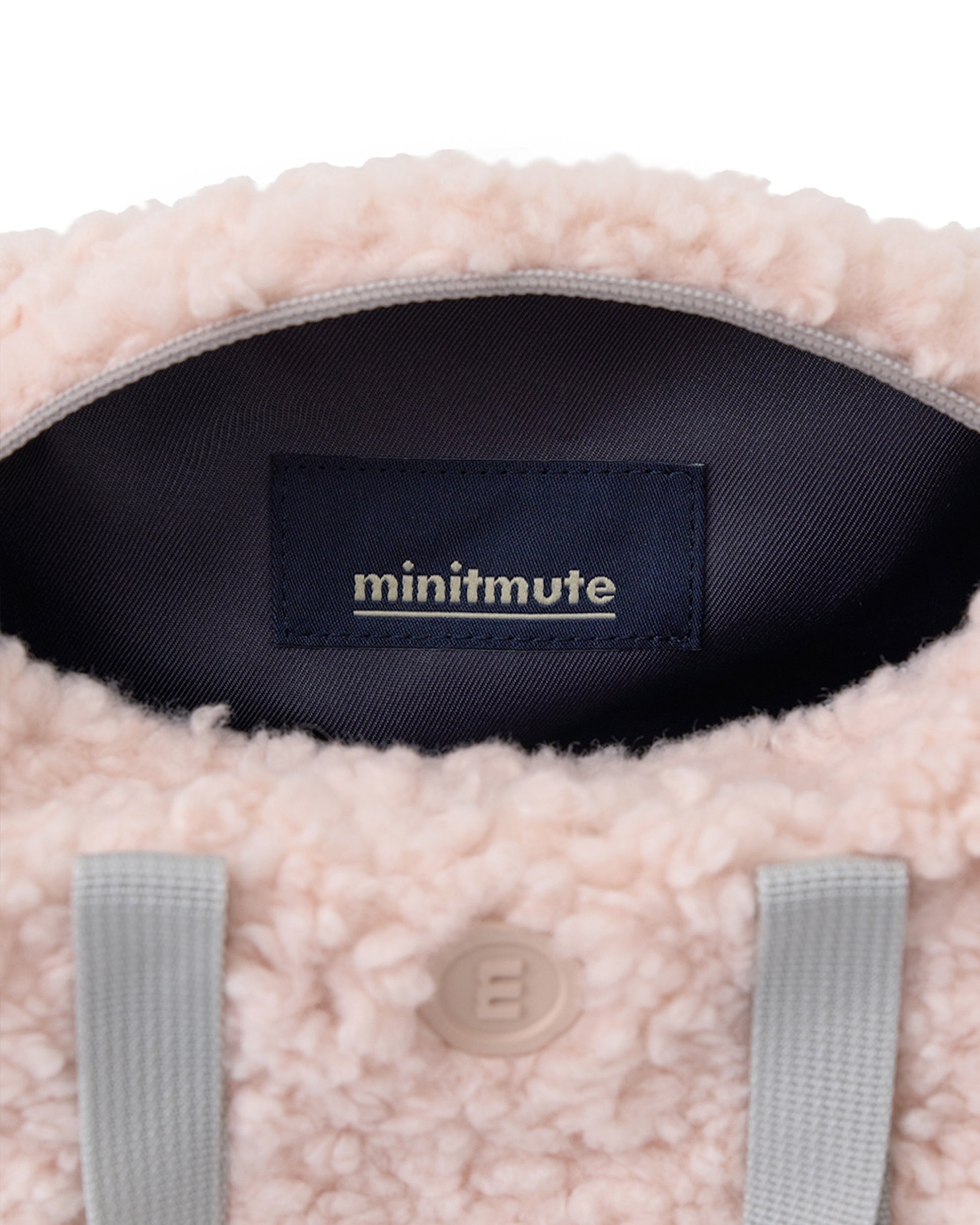 ミニットミュートshearing toteです。暖かいシアリング素材で形が変形しにくく、ボリューム感たっぷりで柔らかい手触り感が特徴です。アウターが厚くて重くなる寒い季節に軽く持って、お出かけにピッタリ。ポリシアリング生地は摩擦力が少なく、明るいカラーでも汚れにの気にせずご使用できます。