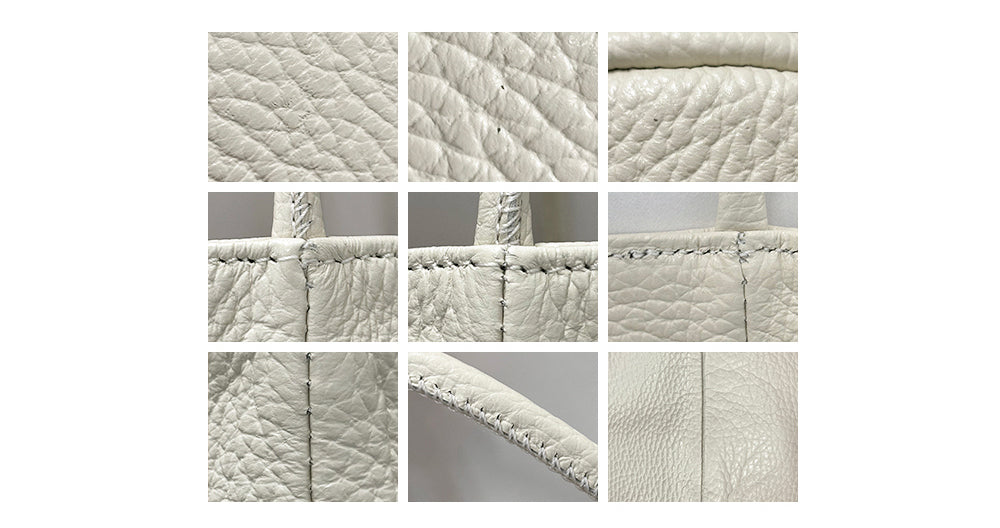 ミニットミュートtobo bagです。イタリアのエンボシュロンクンタイプで、不規則で自然なエンボが特徴です。 コーティング処理されているのでスクラッチと水分に強い方で、梅雨時のデイリーとして使いやすいです。 ストラップは難易度の高い特殊ステッチで仕上げ、丈夫さと完成度を高めました。トートとショルダーで着用でき、ミニマルなムードのミニットミュートチェーンのシンボルがさり気ないワンポイントになります。